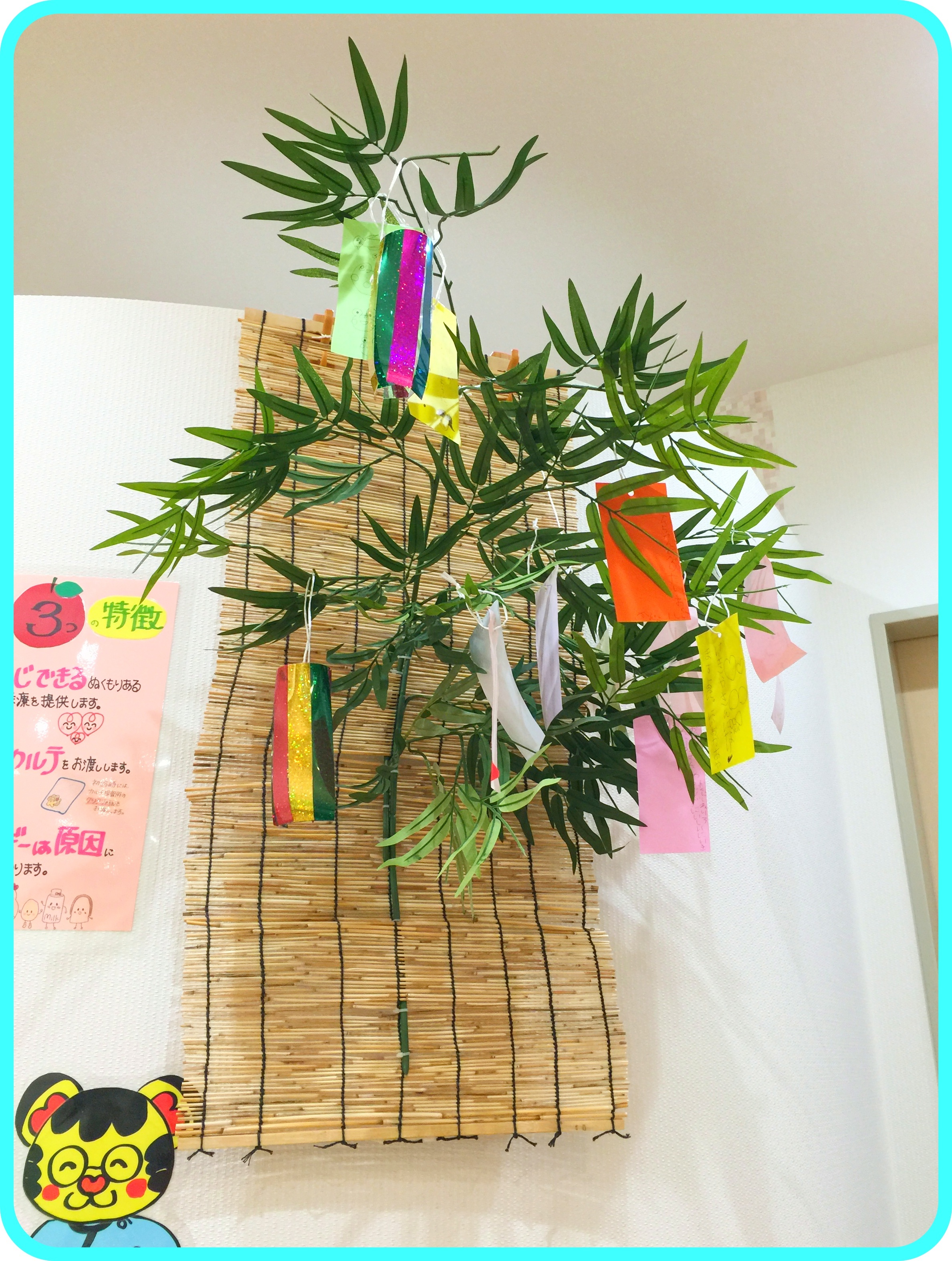 保育士さんが、待合いに七夕の飾り付けを作ってくれました。