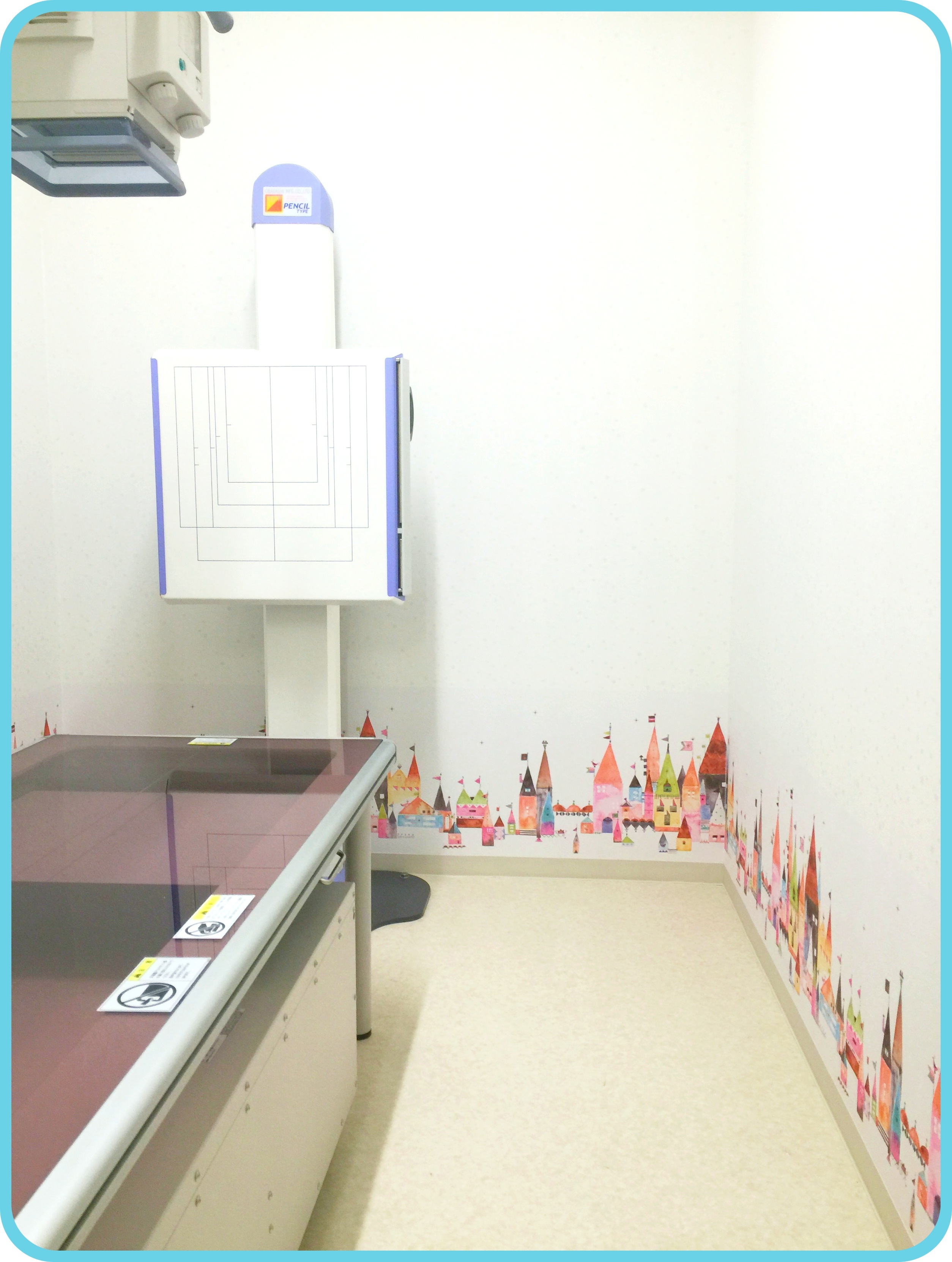 レントゲン室は壁紙を工夫してお子さんが怖がらないよう配慮しています。