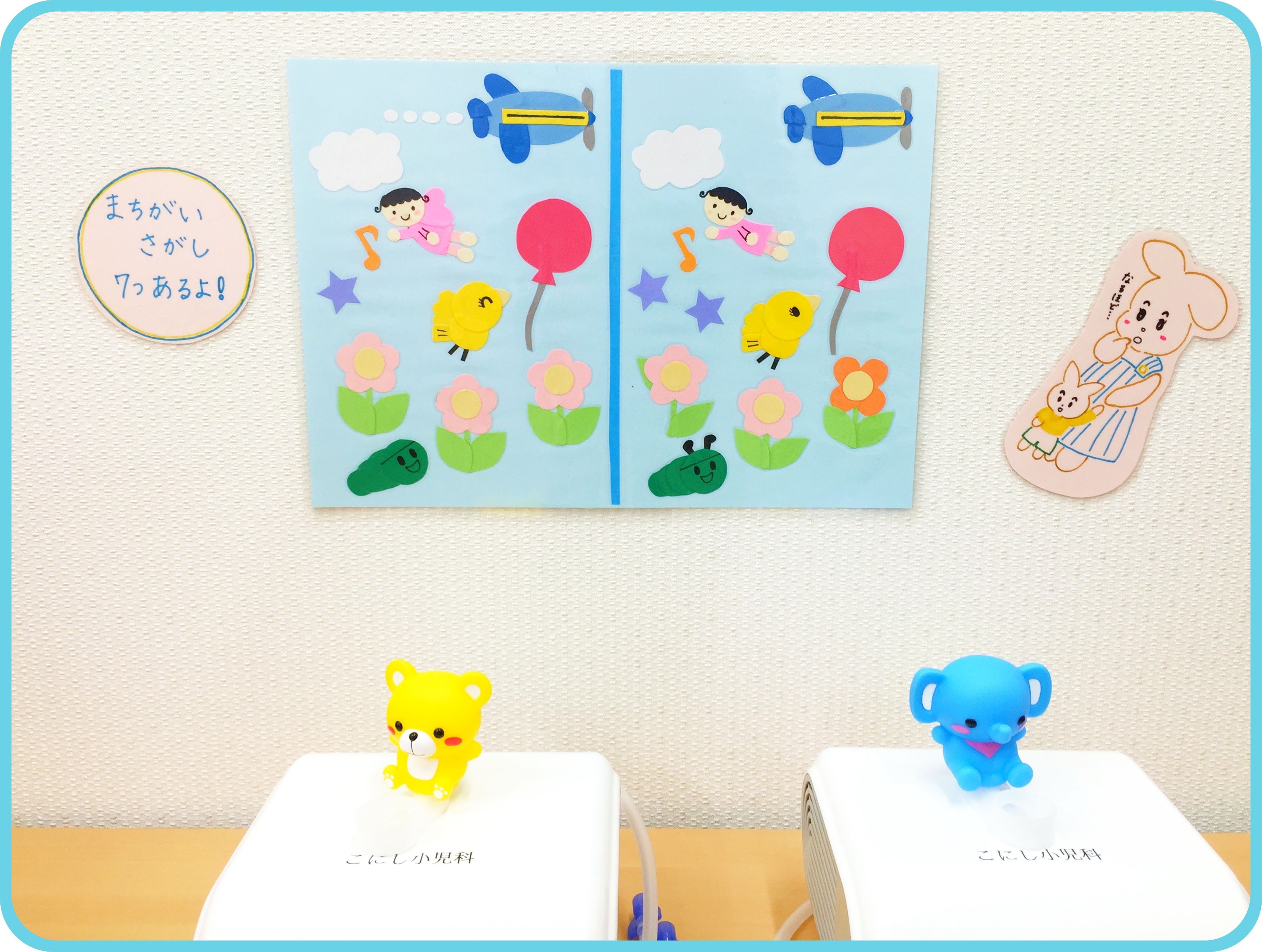 「こにし小児科・アレルギー科」では主に月〜金曜の午前外来と金曜午後の乳児健診・ワクチン外来の時間に保育士が勤務しております。